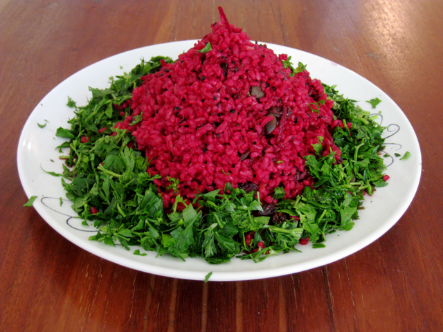 הוראות הכנהמגרדות את הסלק על פומפיה דקה ומערבבות עם הבורגול עד לצביעתו המלאה (חלק מהסלק ניתן לגרד גס, בכל מקרה לא לותר על המיץ של הסלק!) מוסיפות צימוקים, אגוזים, זרעים, קצח, מיץ לימון ושמן זית ומערבבות. מרכיבות את המנה: יוצרות הר של בורגול-סלק, בתחתית המדרון מפזרות פטרוזיליה קצוצה (אפשר להוסיף נענע), ועל המורד, בין הבורגול לפטרוזיליה, מוזגות יוגורט. הכי כיף לאכול בכף עץ ובכל ביס להתענג על שילוב שלושת הצבעים. |